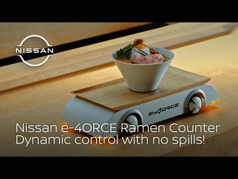 Nissan released today a video of the Nissan e-4ORCE Ramen Counter project that demonstrates how the company’s latest vehicle control technology can provide a comfortable ride in e-4ORCE-equipped vehicles—and for bowls of noodles. The video shows how a motorized server tray with e-4ORCE tech swiftly delivers ramen and maintains the integrity of noodle presentation by suppressing sloshing and movement, from chef to patron, showcasing how the technology translates to benefits in Nissan vehicles. e-4ORCE control technology is offered on the all-new Nissan Ariya crossover EV.